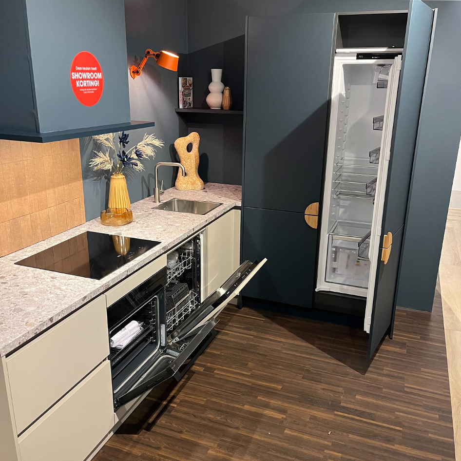 • De keuken is te zien in onze showroom en kan direct worden meegenomen.